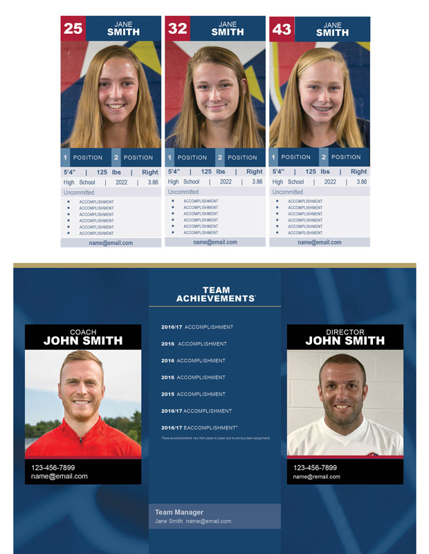 Designed layout in InDesign for daughter's team and recreated in PowerPoint for other team managers and parents to use
